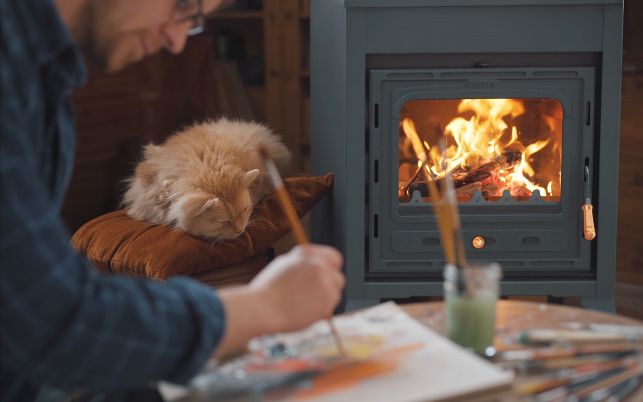 Salamandra a lenha Prity CMR E – Potência e Controle Preciso de Tripla Combustão